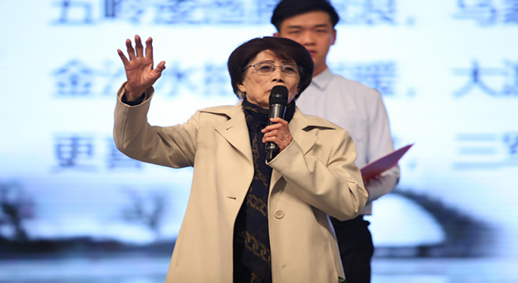 高齡的葛蘭教授親臨現(xiàn)場(chǎng),帶領(lǐng)大家齊頌經(jīng)典紅色詩篇——《七律˙長(zhǎng)征》,點(diǎn)燃了整個(gè)會(huì)場(chǎng)。